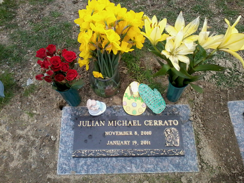 Today marks three months since our baby Julian left us. Here is his final resting place… a place that is so cold and lonely… a place that is surrounded with lots of other little babies and adults that have left their families behind. Driving around this place just creates uncontrollable tears and sadness.