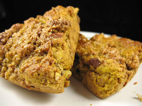 Let me tell you the story. I’ve been experimenting A LOT with pureed pumpkin. I’ve made ravioli, muffins, bread, pie, cheesecake, waffles etc. Well, it’s pumpkin season and one of my classes at the library was all about pumpkins… so I wanted to get creative. Anyway, a couple weeks back, while I was shopping at Whole Foods, I picked up a Pumpkin Pecan Scone. I loved it and decided that I just had to learn how to make it. As many of you know or have learned about me, is that I love to eat scones, muffins and breads. They are “healthier” then other sweet treats, since I make them low in sugar and substitute half the all-purpose flour with whole wheat flour, yet give that sweet satisfaction. Scones have become one of my favorites and I have learned how to make a few different varieties, even though the Maple Oatmeal Scone that started my whole “love of scones” is still my favorite, until today!