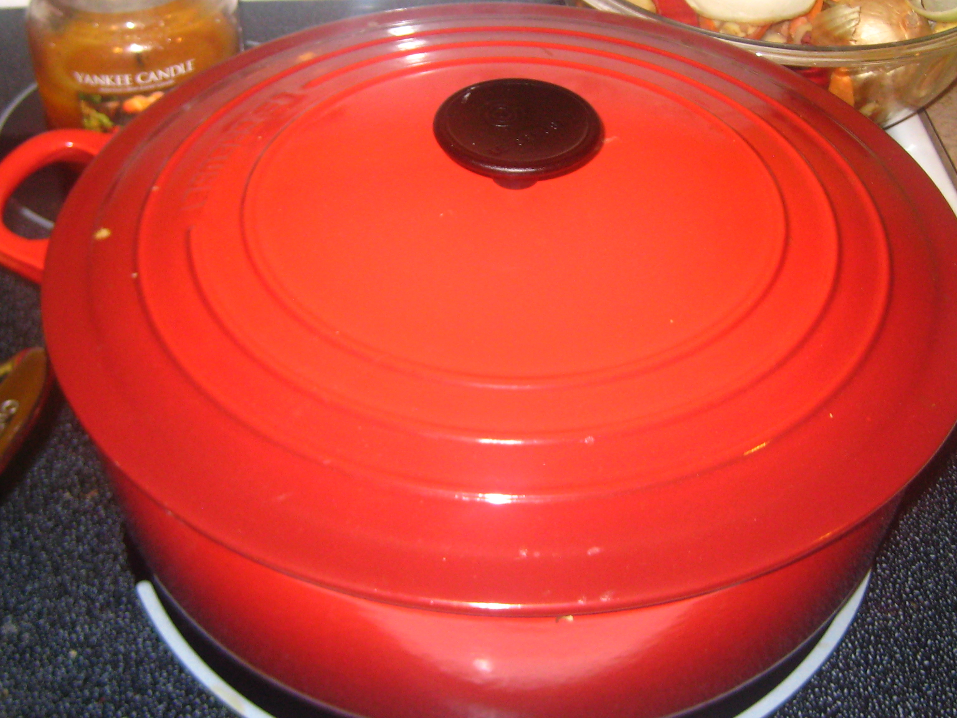 I started my Le Creuset collection with two pans; one large frying pan and one large oval french oven pan, both red. I have been using them almost every day since I got them the week after Christmas. They were my gift to me and I am getting my money’s worth! I got them at the Le Creuset Outlet in Clinton. They had some great sales for the holidays and the prices were un-beatable, better then amazon and same as the prices you find at Marshalls and Home Goods. Trust me, I looked everywhere for months, in search of the best deal. Since the prices were on par to my local Home Goods, I thought the outlet would give me the variety that I wanted since I was looking for some specific sizes/color. (oh yeah, I also own a few Le Creuset casserole dishes that I picked up over the years at TJMaxx and Home Goods. They are so easy to clean and they were dirt cheap!)