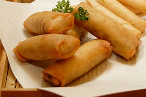 To start, we baked some Indian Samosas (pastries filled with potatoes, peas and carrots) and Thai Spring Rolls (vegetarian style). Yes, we baked them. I have this obsession with taking a typical “fried” item and learning how to bake it so it comes out just as crispy and delicious without all that added fat from deep frying. Well, we got it right with these delicious Samosas and Spring Rolls. No need to fry these, at all!