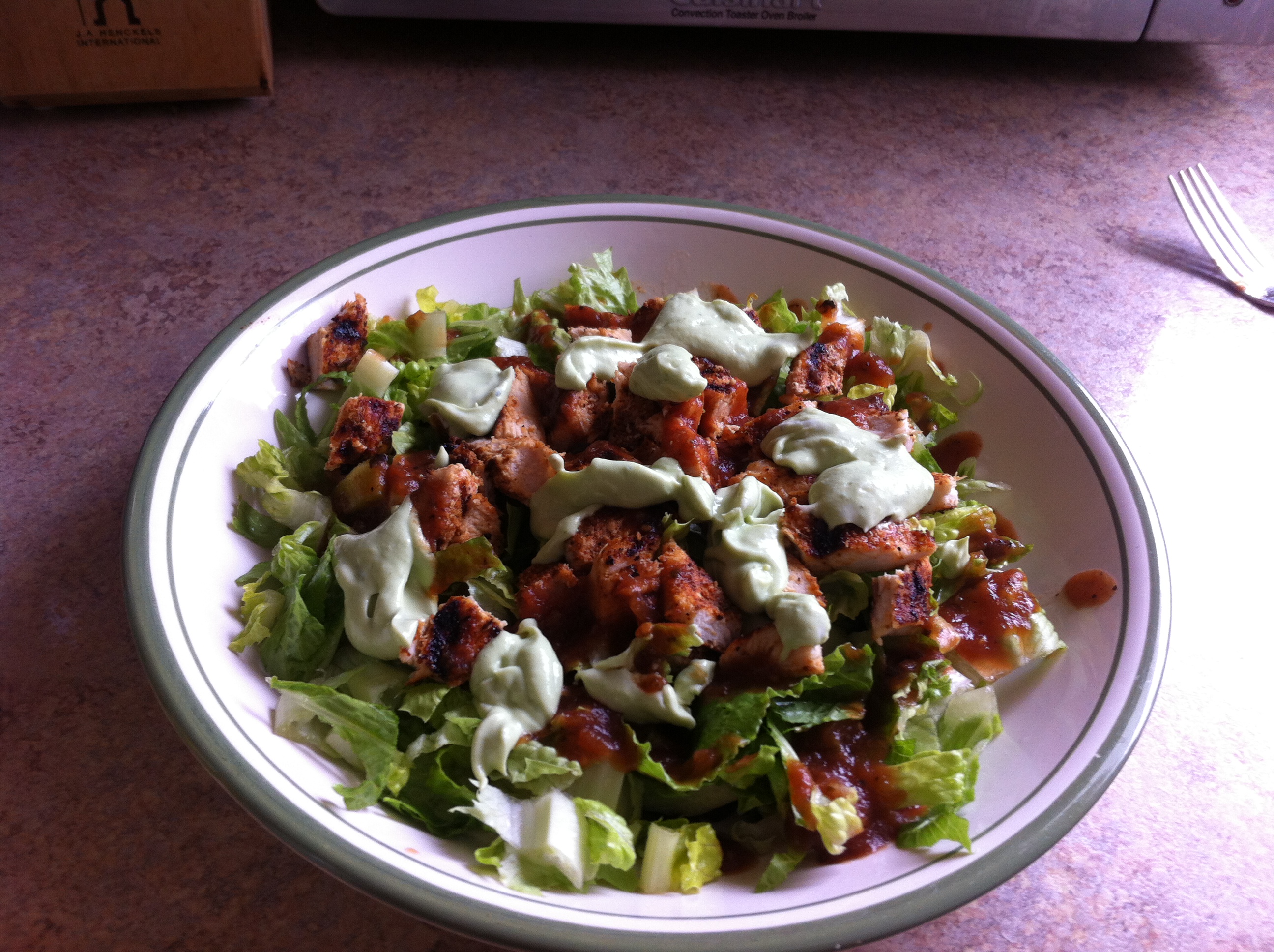 For lunch, I made this protein packed Burrito Bowl. Bottom layer with black beans, followed by shredded romaine lettuce, topped with cajun spiced grilled chicken. Then I made an avocado cream sauce with an avocado, greek yogurt, fresh cilantro, fresh lime juice and salt. YUM. I also added some spicy salsa to my burrito bowl because I didn’t have any fresh pico, although that’s what I would have preferred.